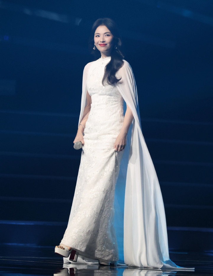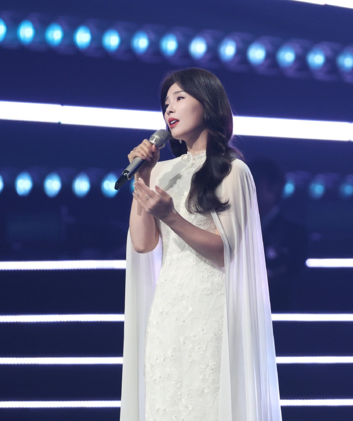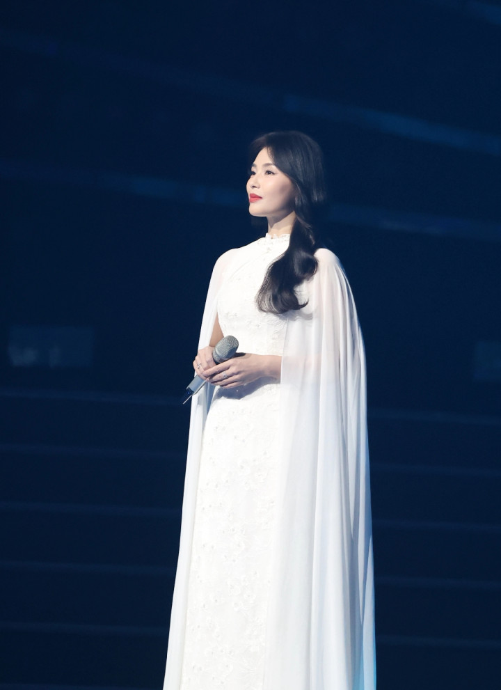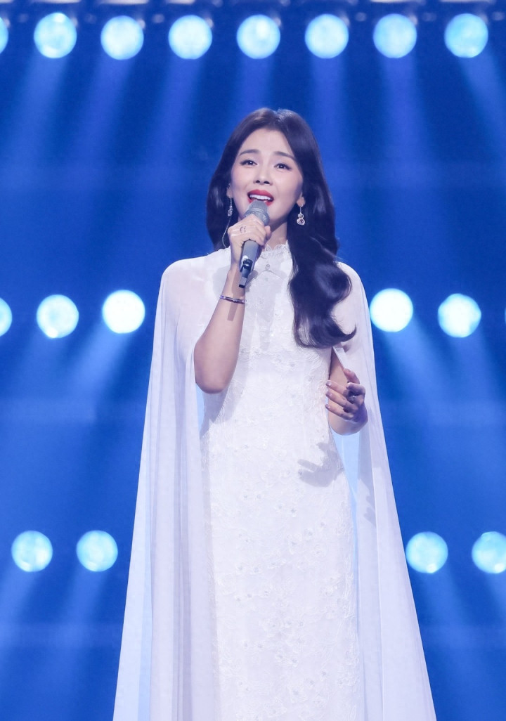 - 47岁刘涛献唱湾区升明月晚会, 身穿白色带披肩长裙, 雍容华贵